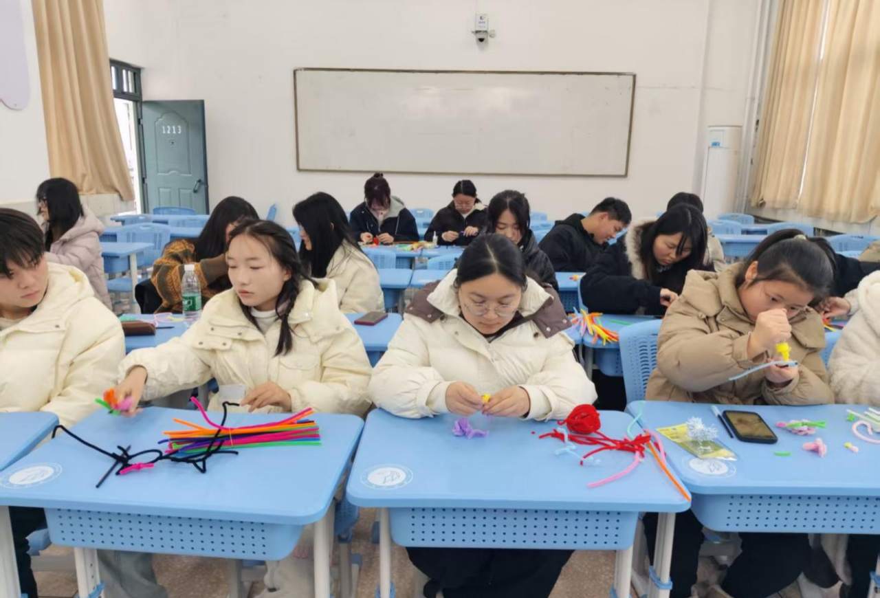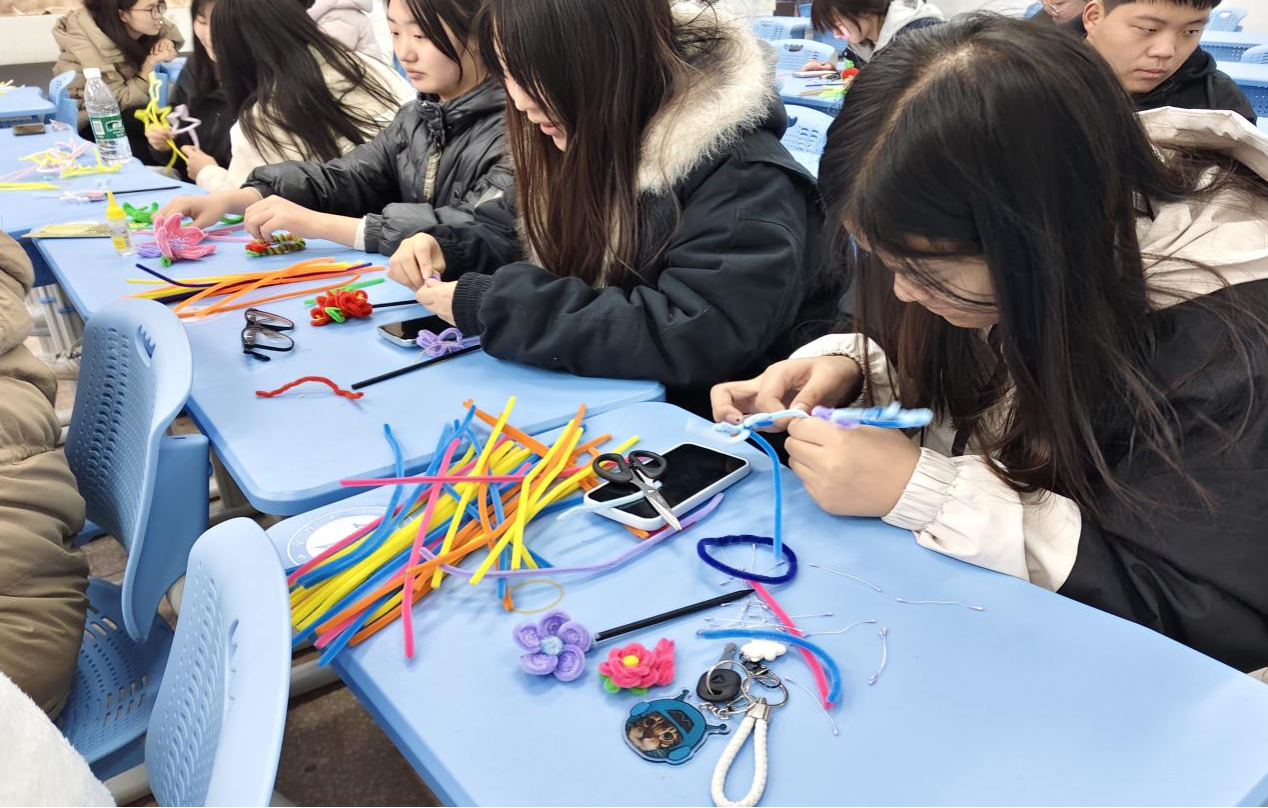 本次活动以“手作传情 簪饰承韵”为核心理念,同学们通过亲手制作发簪,在缠绕点缀的过程中,体验传统饰品的精巧之美。活动现场,同学们在负责人的悉心指导下,认真选材、细心制作,从缠绕花片到串连成饰,从固定造型到调整细节,每一步都凝聚着专注与创意。大家以手为媒,将温情与祝福融入一簪一饰之间,每一件作品既是手工技艺的实践,也是对传统文化的当代诠释。活动结束后,同学们纷纷表示:“亲手做发簪不仅锻炼了耐心,还让我们体会到了‘物中有情’的传统美学。”