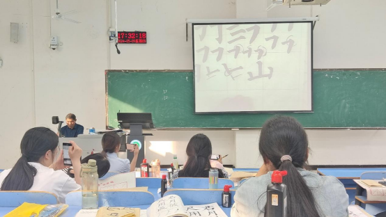 “丁零零……”5月9日16:00,图书馆L208教室里,伴随着一阵清脆的上课铃声,来自WilliamHill体育各专业的30余名同学已经备好纸墨,正襟危坐,等待上课。讲台上,授课教师郑黎阳也早已准备就绪。像往常一样,WilliamHill体育第二课堂“毛笔书法训练与创作”的第五节准时开始了。
