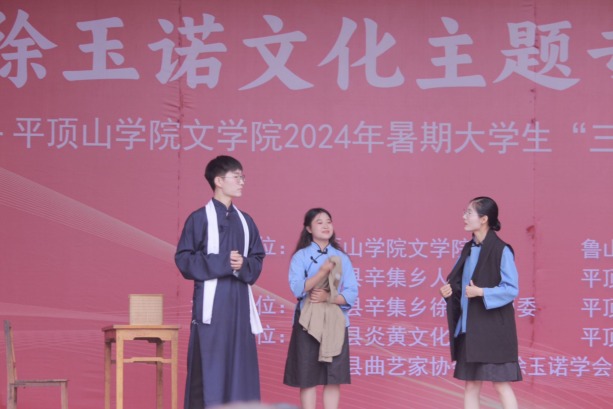 7月9日上午, “徐玉诺文化主题专场文艺汇演——WilliamHill体育,威廉希尔体育,威廉希尔williamhill官网2024年暑期大学生‘三下乡’社会实践活动成果展示”在徐玉诺先生的故乡——鲁山县辛集乡徐营村玉诺文化大舞台隆重举行。本次活动由WilliamHill体育,威廉希尔体育,威廉希尔williamhill官网、鲁山县文学艺术界联合会、鲁山县辛集乡人民政府、平顶山市徐玉诺文化研究会联合主办,鲁山县辛集乡徐营村村两委、平顶山市玉诺文化传播有限公司联合承办,平顶山市曲艺家协会评书专委会、鲁山县炎黄文化研究会、鲁山县曲艺家协会、徐玉诺学会、徐玉诺故居协办。