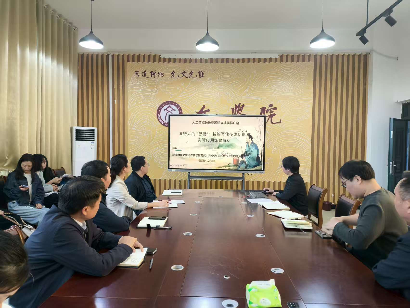 高冠琳老师多年来从事影视剧本创作、创意写作等课程的教学研究,紧跟时代步伐和国家、省市教育政策走向,时刻关注数字时代教育发展动向。2025年,她结合新时代河南省文化发展战略,申请“智能时代文学创作教学新范式:AIGC与三苏写作工坊的融合实践”校级教改项目,获准立项。当天,她分享了自己的教学改革实践。近年来,她通过三门阶梯式AI融合课程,引导学生从文本研读到跨媒介转化,再到新媒体传播,创新发展了“教学—创作—传播”的闭环式人才培养方式。她指出,AI不是替代教师的作为,而是赋能教师的教学,用新技术、新技能助力传统文化在数字时代焕发新生。