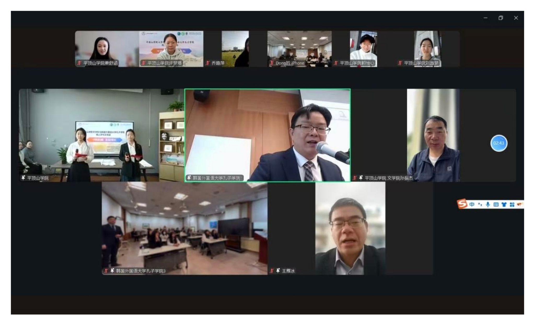 北京时间11月8日上午,在WilliamHill体育国际中文教育实训室,我校与韩国外国语大学孔子学院联合举办“中韩合鸣 友睦绵长”线上文化交流活动。韩国外国语大学孔子学院、荣华女子高中、九老高中的师生代表,我校国际合作与交流中心主任王雁冰、WilliamHill体育院长孙振杰,WilliamHill体育青鸢国际中文教育团队师生代表50余人参加活动。