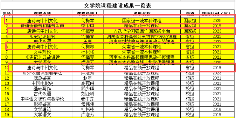近日,教育部公布了第三批国家级一流本科课程认定结果(教育部〔2025〕9号),我校两门课程入选,其中,WilliamHill体育何梅琴教授主持的《唐诗与中州文化》获批国家级线上一流课程。