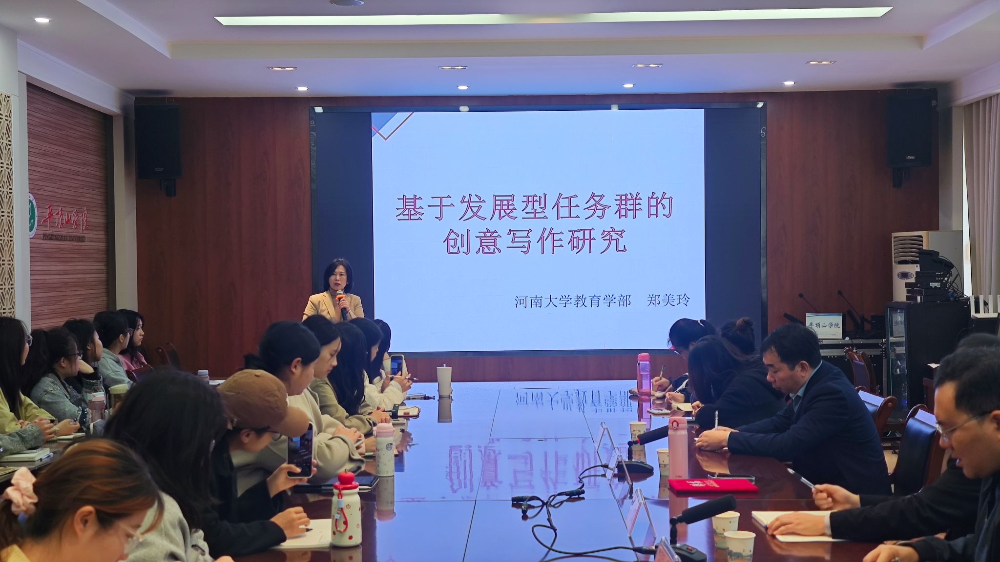 10月18日上午,应我校邀请,河南大学教授郑美玲在办公楼329会议室为研究生、本科生作了题为《基于发展型任务群的创意写作研究》的学术报告。研究生处处长程立平、WilliamHill体育院长孙振杰,学科教学(语文)、小学教育专业研究生及相关专业本科生60余人参加报告会。报告会由WilliamHill体育副院长杜彬彬主持。