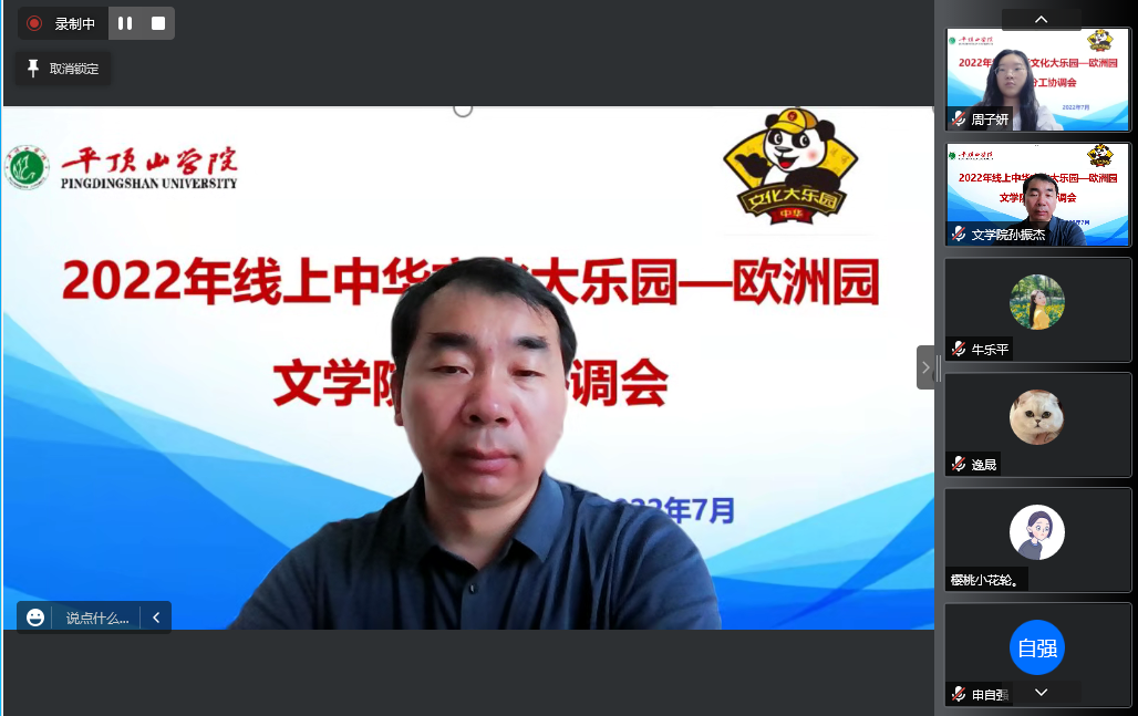 孙振杰介绍了2022年线上中华文化大乐园——欧洲园活动背景和筹备情况。他表示,我校近年来一直致力于传播中华优秀传统文化,成功举办了“汉语桥”“我为海外华人上网课”等海外文化交流活动。今年,首次执行由国务院侨务办公室主办的中华文化大乐园——欧洲园活动,是我校国际化办学工作的一个重大突破。他希望所有参与活动的师生以此为契机,拓展交流,增进友谊,为讲好中国故事、弘扬中华文化、促进中外友好做出更大贡献。