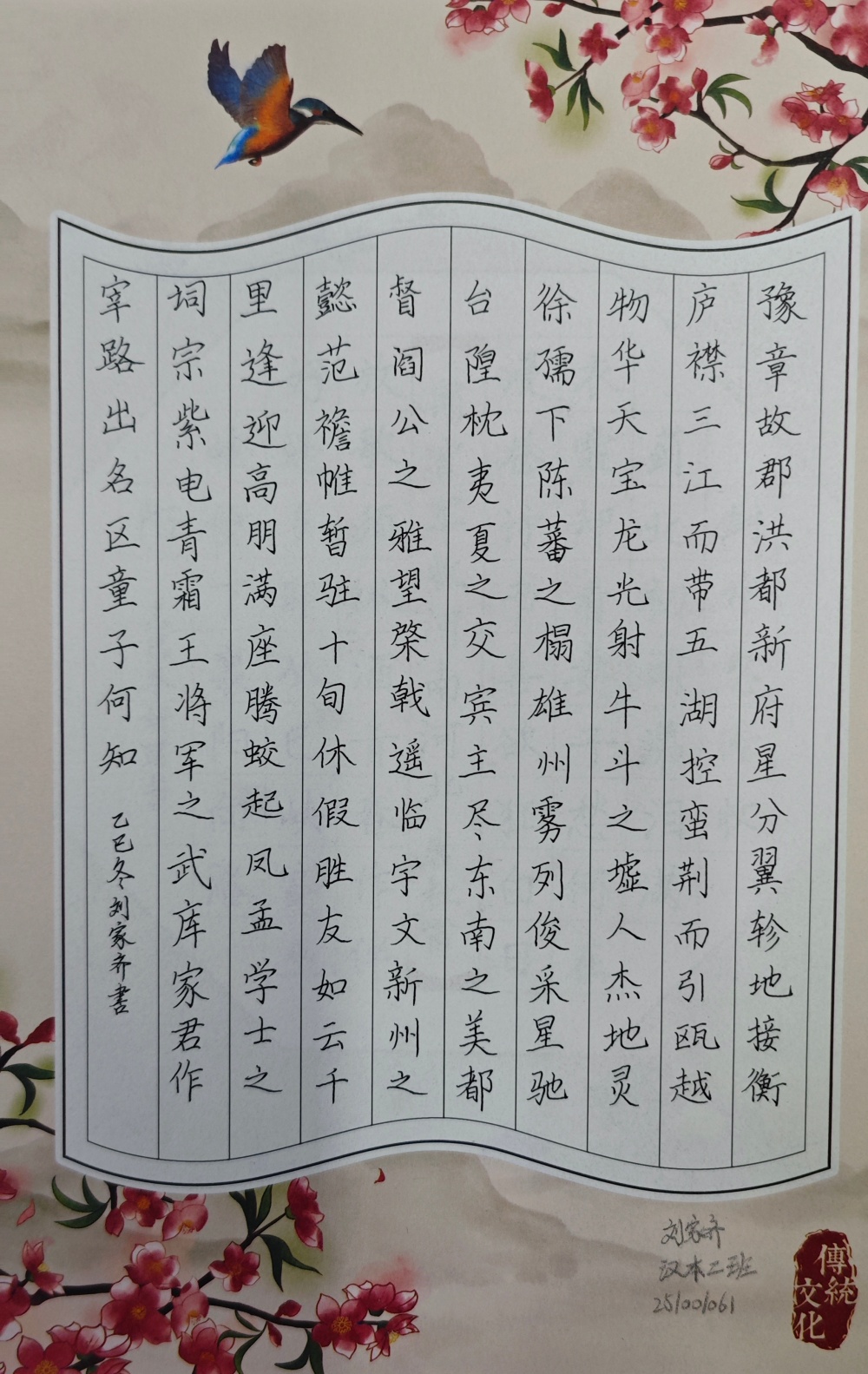 2025年9月,WilliamHill体育按照教育部师范专业认证要求,在2025级新生中开启了师范生教学基本功提升计划。该计划包括培养学生的汉语读、说、写技能,希望通过此计划让学生在大学四年里理论与实践结合,多加练习,不断提高阅读、口语表达、汉语书写的综合能力,将来能胜任中学语文教学、企事业单位文职工作。以下是2025级各班同学的优秀硬笔书法作品。